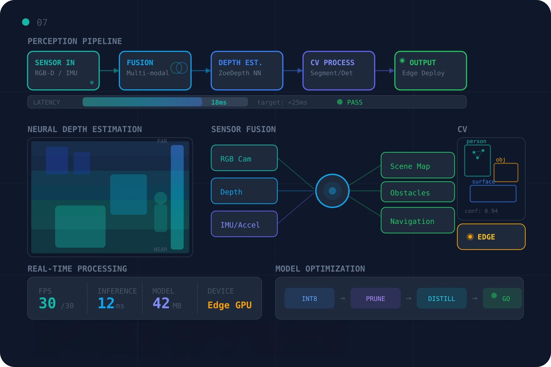 Novel perception systems require novel validation. We design systems with experimental comparison built in — multiple strategies testable under identical conditions, instrumented for data collection.